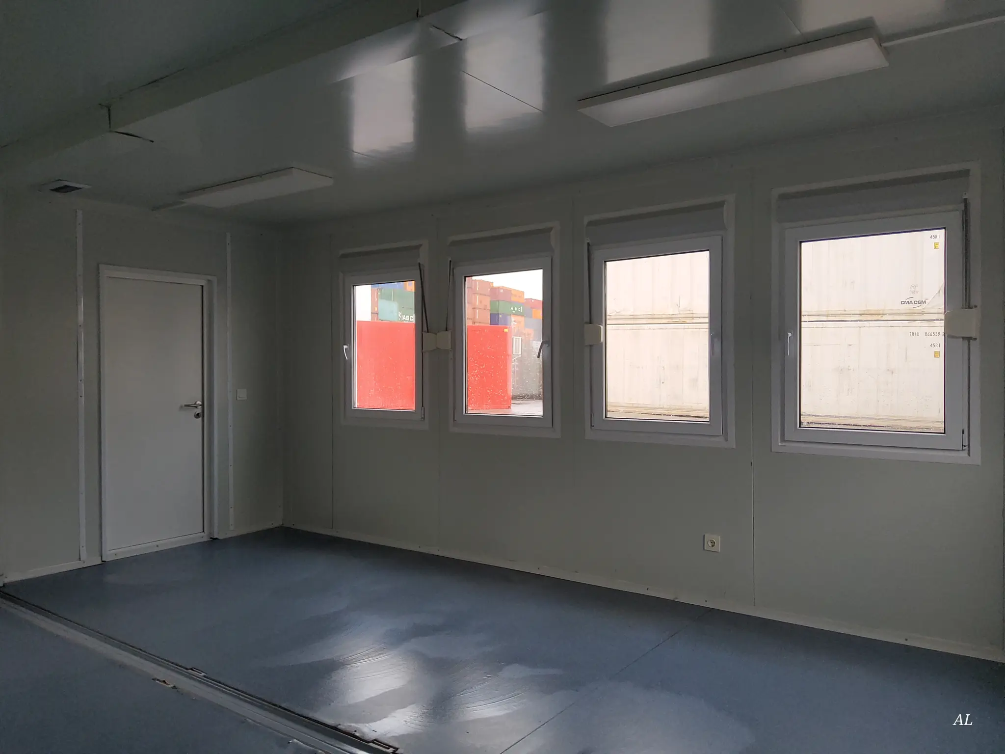Mit Bürocontainern schaffen Sie schnell und kostengünstig Büroräume in nahezu beliebiger Größe überall dort, wo sie gerade benötigt werden. In Sachen Ausstattung und Komfort stehen moderne Bürocontainer festen Gebäuden in nichts nach. Diese Duo-Anlage umfasst eine hochwertige Ausstattung mit mehreren Fenstern, einer Stahlaußentür und Rollläden. Zudem besitzt sie eine Elektroausstattung und Heizungs-, Lüftungs-, Kühlungsausstattung.
