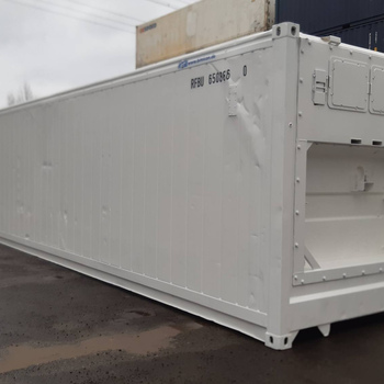 Ein Container besteht aus Stahlrahmen mit wärmeisolierenden Wänden in Sandwich-Bauweise mit Polyurethan-Schaum und Kühlaggregat.